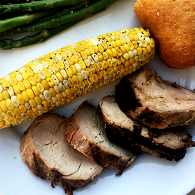 - Remove pork from marinade, and grill for 16-18 minutes. (Not feeling like grilling? Bake at 400 F for 20 minutes).