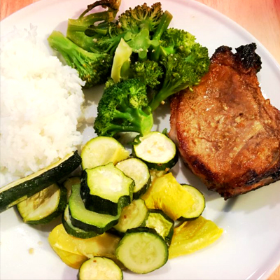Last week, my daughter and I stopped by the Morningside Farmers’ Market, and picked up some delicious produce and meat – including these pork chops from Riverview Farms.