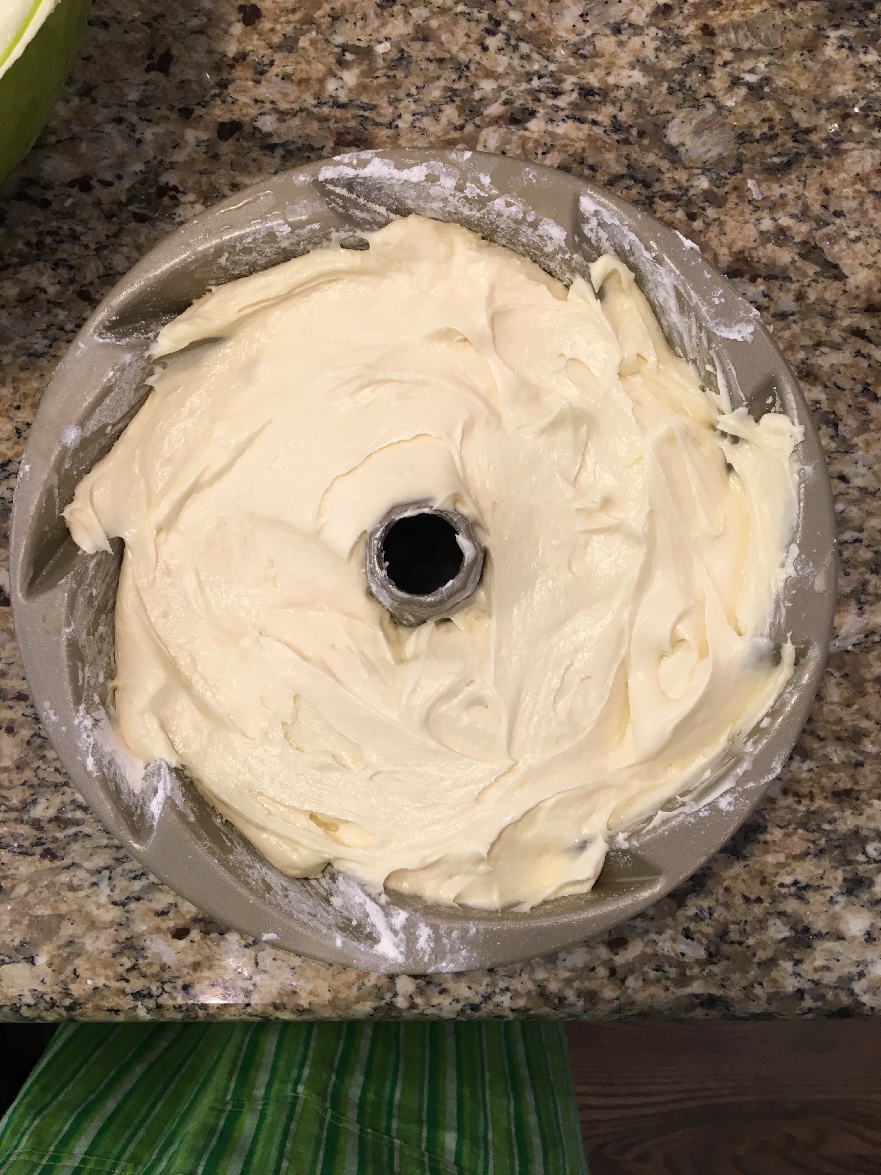 - Grease a cake/bundt pan using additional butter